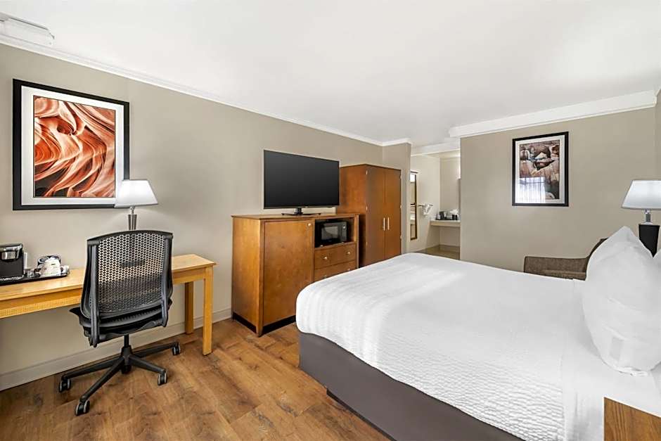 This room offers a flat-screen TV with cable and movie channels, a coffee machine, a microwave, and a refrigerator. The private bathroom includes a hair dryer and ironing facilities.